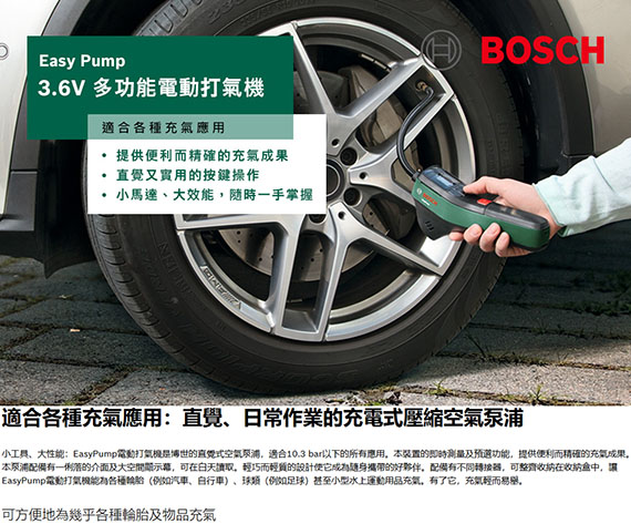 BOSCH EasyPump 3.6V 多功能電動打氣機 0603947080(特價,售完調漲)