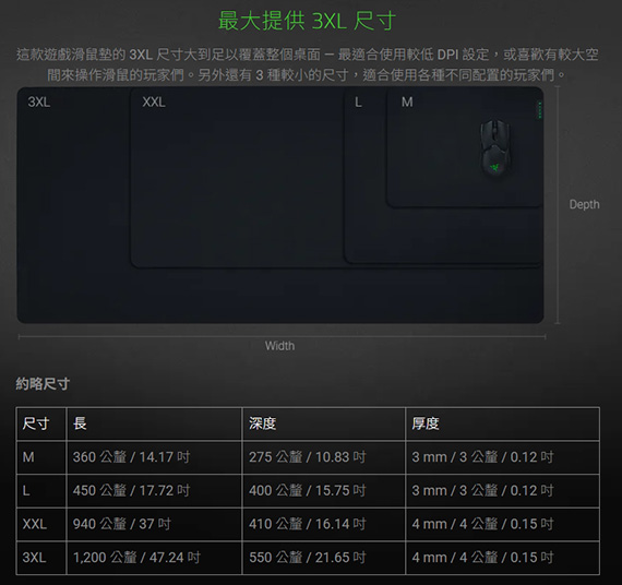 尺寸940x410x4mm,表面材質:超細緻編織紋理布料,底部材質:防滑,裡部材質:厚實的高密度橡膠泡綿,1年保固