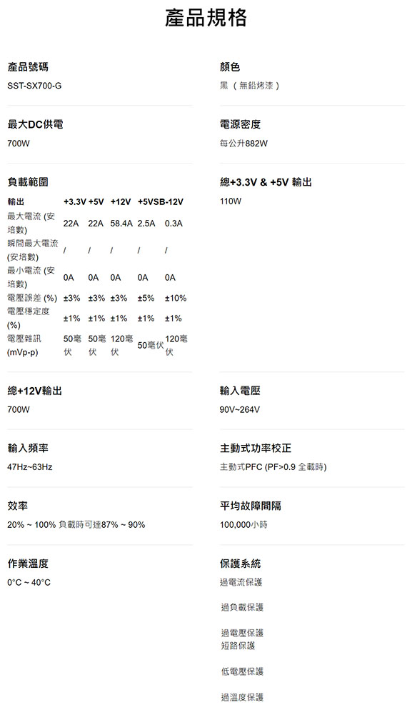 SilverStone銀欣 700W SST-SX700-G 80PLUS金牌 全模組化 電源供應器 全日系電容
