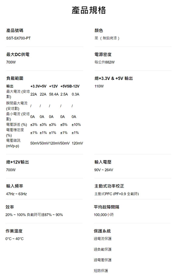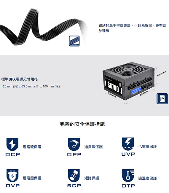 SilverStone銀欣 700W SST-SX700-PT 80PLUS白金牌 全模組化 電源供應器 全日系電容