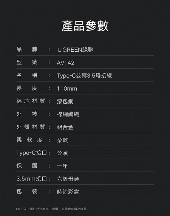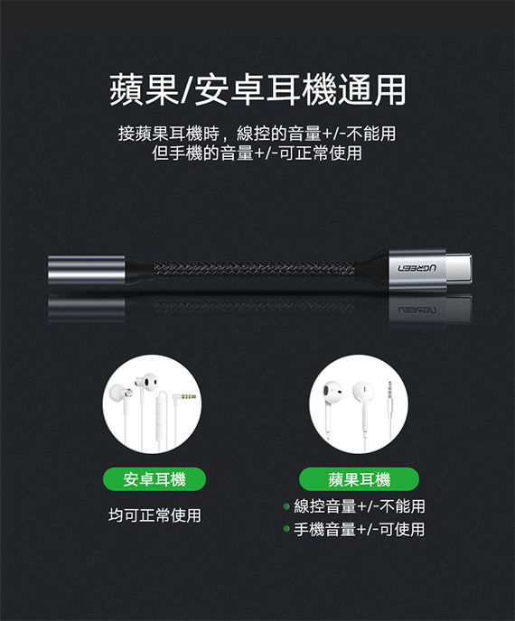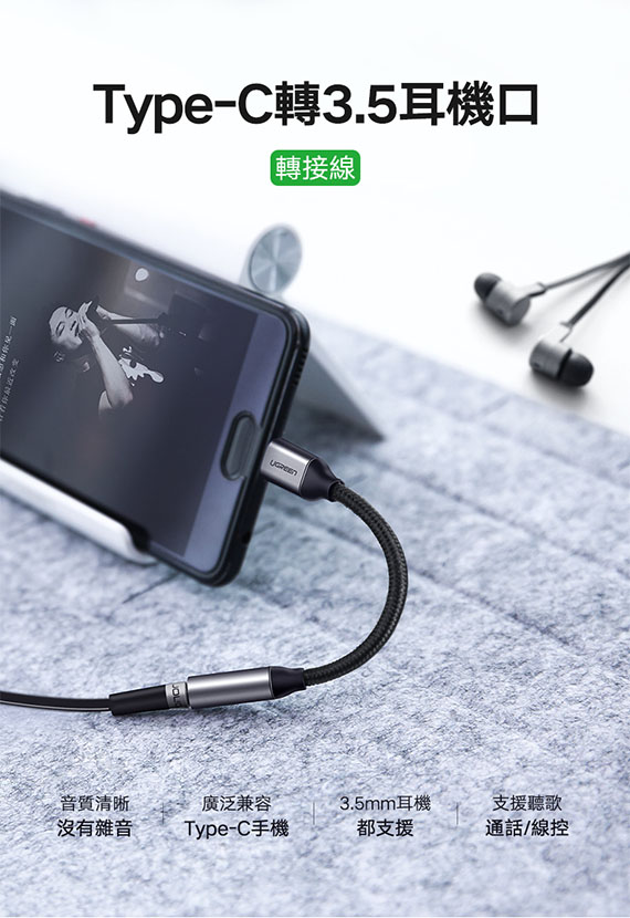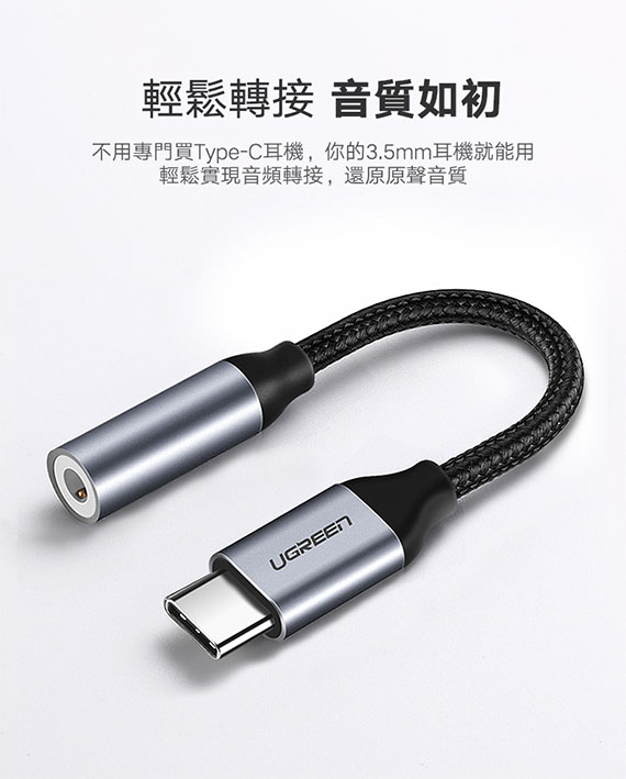 【上一個】【下一個】 | UGREEN綠聯 30632 Aluminum BRAID編織金屬版 USB TO Audio 音訊轉接線 Type-C公-3.5mm立體聲(二環)母