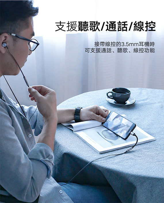 USB Type-C公<-->3.5mm立體聲(二環)母,有線,鋁合金外殼,抗拉扯,請注意:Google、HTC與samsung手機無法適用