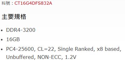 Micron美光 Crucial 16GB DDR4 3200 CT16G4DFS832A(原生顆粒)(限組裝不零售)