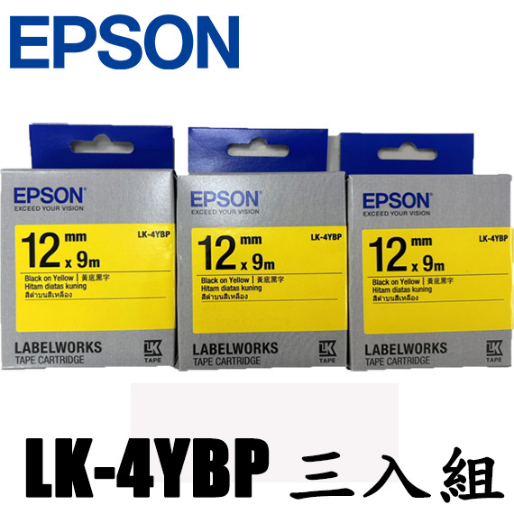 【上一個】【下一個】 | EPSON愛普生 12mm LK-4YBP 黃底黑字 3入優惠組 (單盒包*3) 標籤機色帶 辦公室醒目包可參考