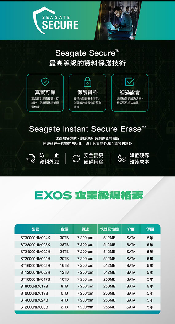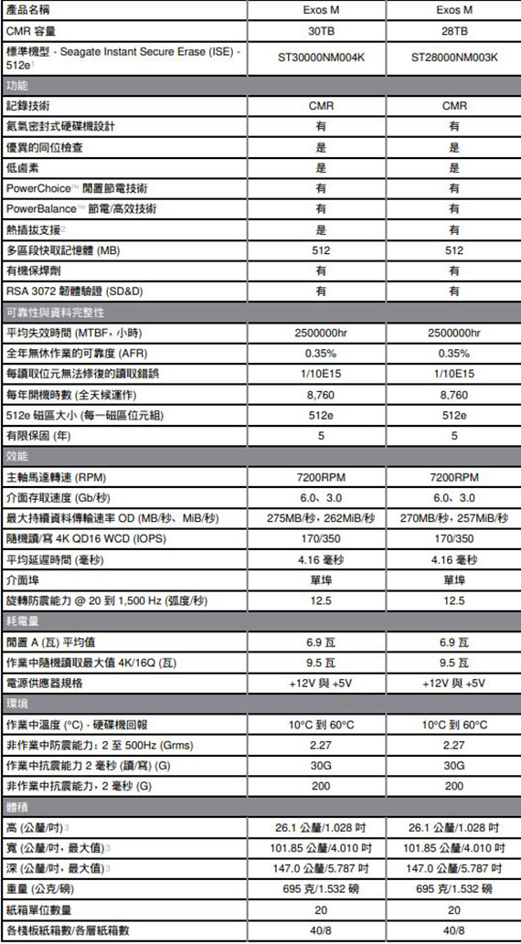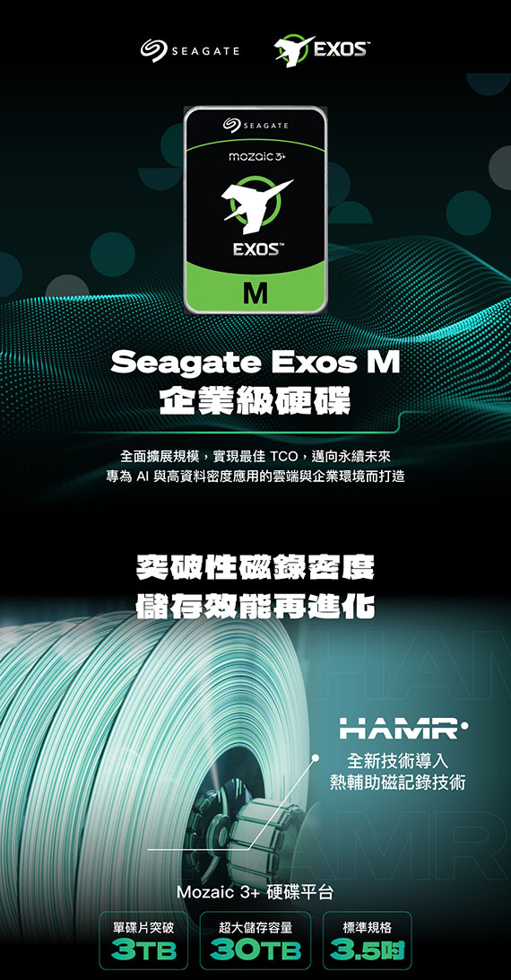 【上一個】【下一個】 | SEAGATE 30TB ST30000NM004K Exos M SATA企業級硬碟 (五年保固)