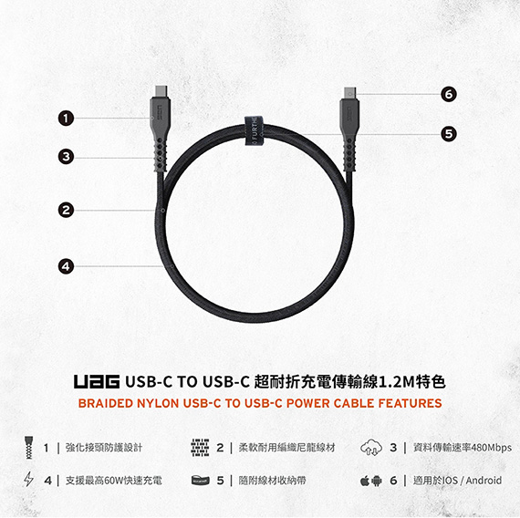 【上一個】【下一個】 | 其它 UAG 超耐折充電傳輸線 Type-C USB傳輸線 C公-C公 1.2M 灰(限量售完為止)
