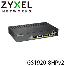 【上一個】【下一個】 | ZYXEL兆勤合勤 GS1920-8HP v2 8埠+2埠SFP GbE智慧型網管PoE交換器