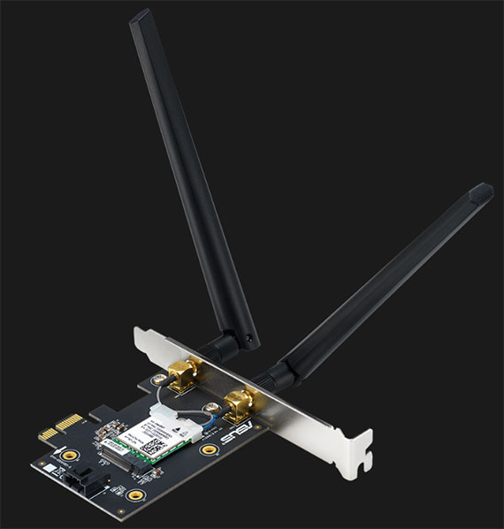 PCI-Express x 1介面、藍牙5.4、外接天線*2、支援6GHz頻段、4096-QAM、WPA3網路安全