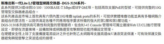 D-Link友訊 DGS-3130-30TS 24埠 Lite L3 網管型交換器