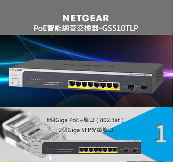 【上一個】【下一個】 | NETGEAR GS510TPP 8埠 Gigabit 智能網管PoE+交換器