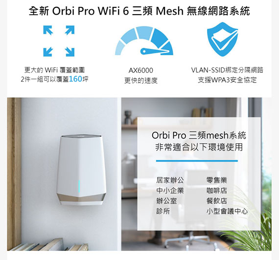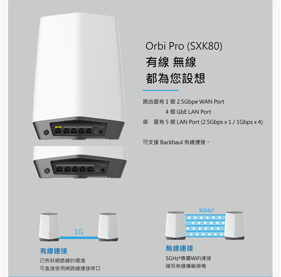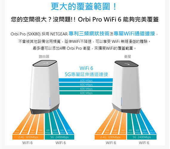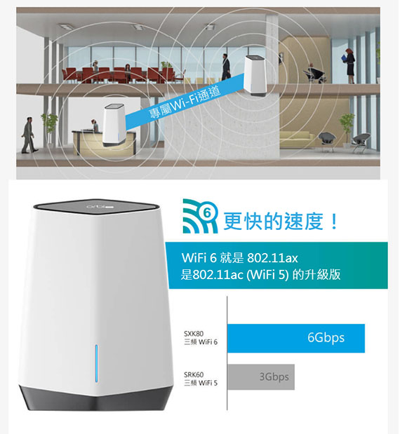 【上一個】【下一個】 | NETGEAR SXK80 Orbi Pro 三頻 AX6000 WiFi 6 Mesh 延伸系統 (SXK80+SXS80)