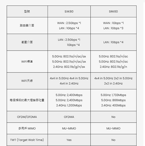 2.4GHz/5GHz三頻,支援802.11ax(Wi-Fi 6)無線技術,支援OFDMA+MU-MIMO技術,AX6000Mesh商用WiFi 6延伸系統,8組高性能內置天線與高功率訊號放大器,提供4組SSID 管理者/員工/訪客/IoT設備,分層WiFi控管能力,支援WPA3安全協定,兩件一組可覆蓋約160坪使用範圍,介面:路由器:1*2.5G WAN Port,4*Gigabit LAN Port, 衛星:1*2.5G +4*Gigabit LAN Port,五年保固,NCC:CCAI20LP2800T7(SXR80)/CCAI20LP280AT9(SXS80)