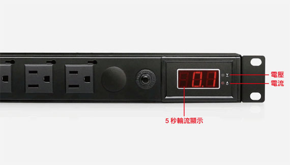 - 採配置 3位數 LED 數位式電錶,可讀取精密用電資訊包括 : V(電壓)、A(電流)(每五秒輪流顯示)