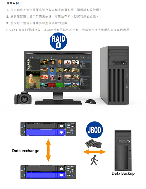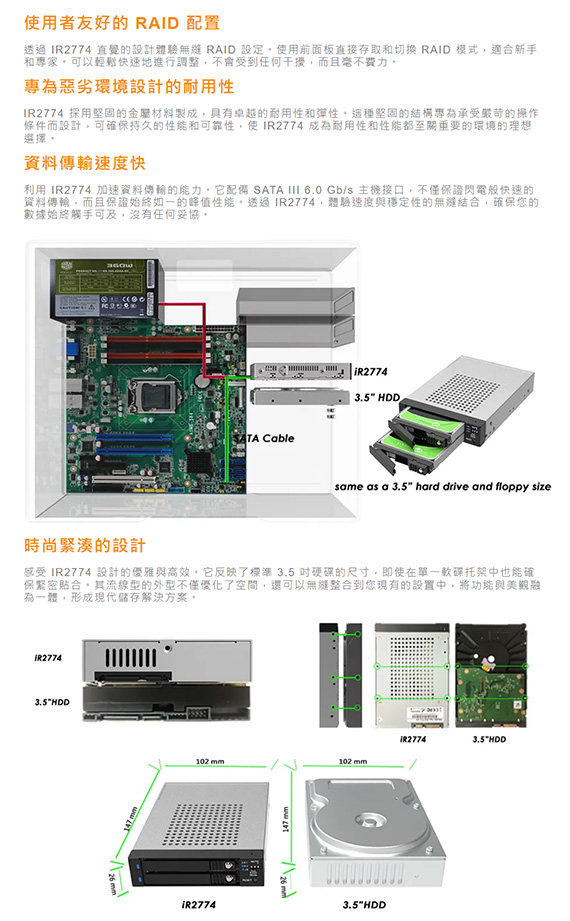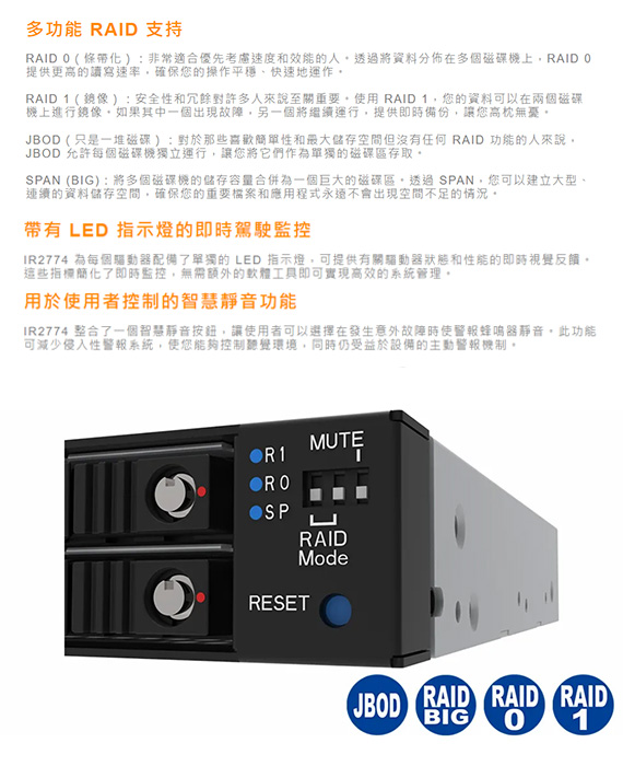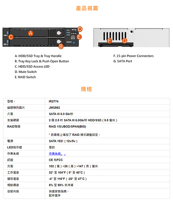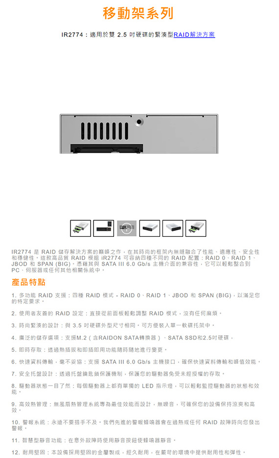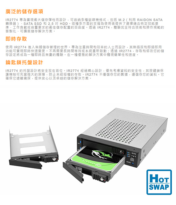 【上一個】【下一個】 | RAIDON InTANK iR2774-S3 2-Bay 2.5吋 HDD/SSD 磁碟陣列內接抽取盒