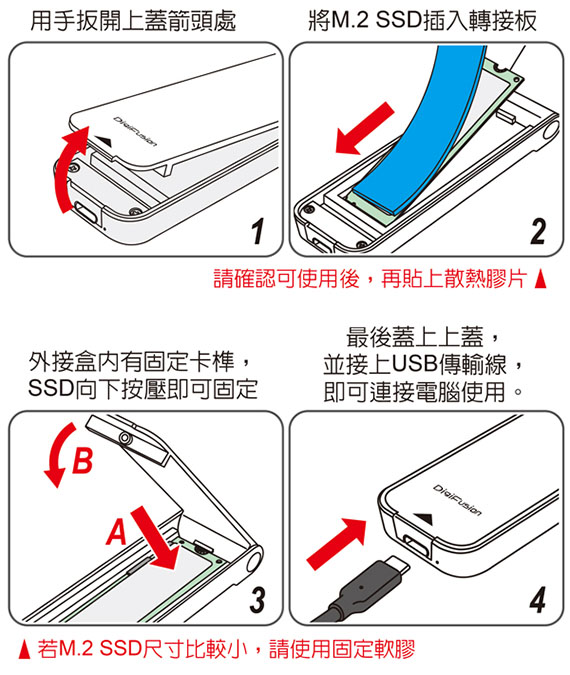 【上一個】【下一個】 | DigiFusion 伽利略 M2NVU35 USB3.2 Gen2 M.2 NVMe SSD 翻蓋式外接盒
