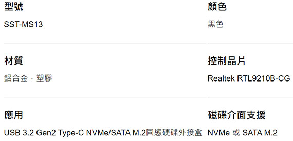 【上一個】【下一個】 | SilverStone銀欣 SST-MS13 MS13 Type-C SATA/NVMe雙模式 RGB M.2 SSD硬碟外接盒(特價,售完調漲)