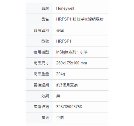 Honeywell HRF-SP1 強效淨味濾網-寵物(購買前請先詢問庫存)