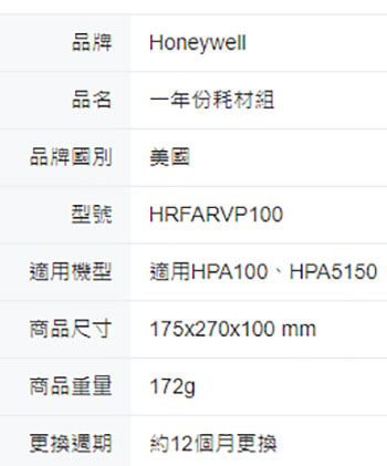 Honeywell HRF-ARVP100 一年份耗材組 (4片活性碳+1片HEPA/盒) 適用型號:HPA-100/5150