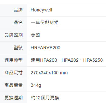 Honeywell HRF-ARVP200 一年份耗材組 (4片活性碳+2片HEPA/盒) 適用型號:HPA-200/202/5250