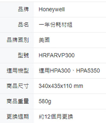 Honeywell HRF-ARVP300 一年份耗材組 (4片活性碳+3片HEPA/盒) 適用型號:HPA-300/5350