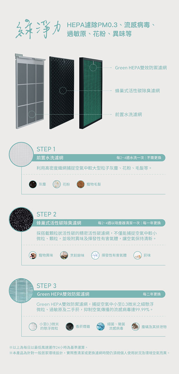 AP-1019C 適用,過濾PM0.3達99.97%,抑制流.感.病.毒達99.99%,雙效蜂巢式除臭濾網吸附異味及有機氣體,長效型濾網,更經濟環保