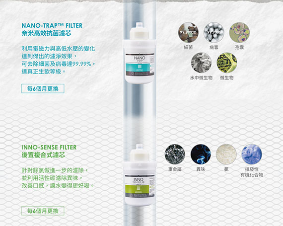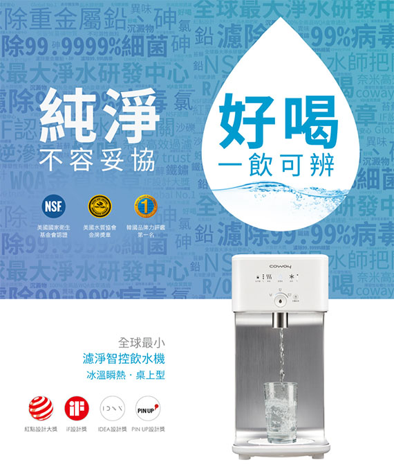 CHP-242N飲水機適用,多重過濾系統,獲多項國際水質認證,符合NSF/ANSI42口感品質標準,符合NSF/ANSI53健康品質標準