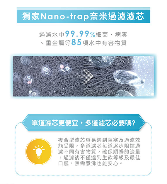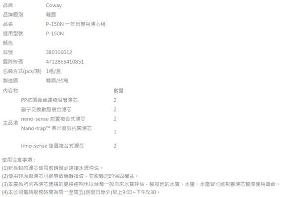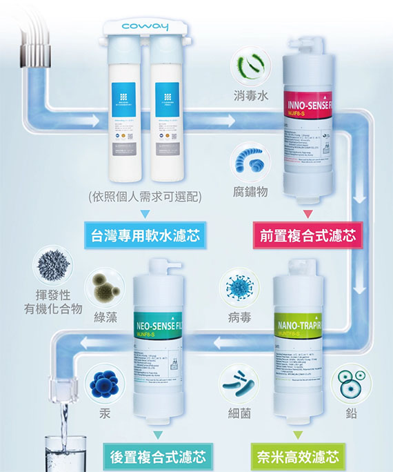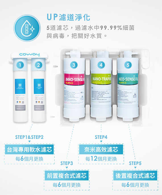 P-150N適用,5道過濾系統,過濾99.99%細菌與病毒達可生飲等級,台灣水質專用