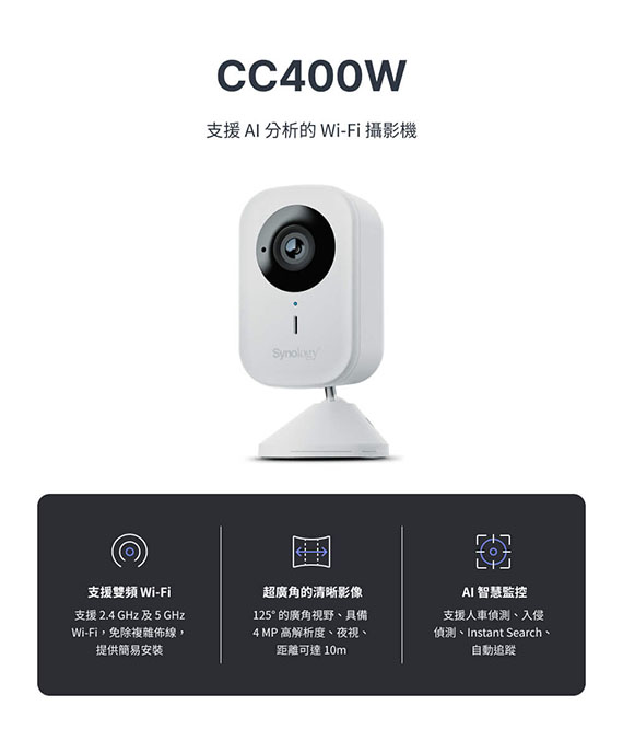 Synology群暉 CC400W AI 智慧監控 Wi-Fi 攝影機