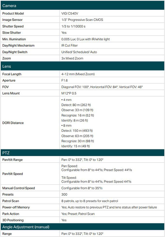 VIGI C540V 4MP 戶外型全彩雙鏡頭變焦旋轉式監視器/商用網路監控攝影機 |