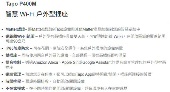 TP-Link Tapo P400M Wi-Fi戶外型智慧插座