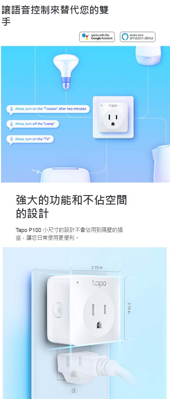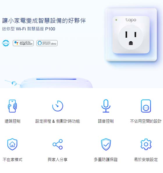 - 語音控制-透過 Amazon Alexa 或是Google 助理語音控制您的設備。