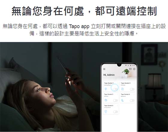 - 遠端控制-無論您身在何處,都可以透過 Tapo app 立刻打開或關閉連接在插座上的設備。