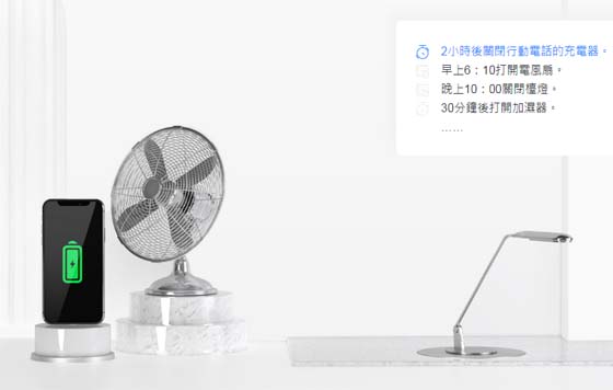 排程和到數計時的功能可讓您建立每週的計畫。您所連接的所有設備都可在您所預設的時間自動工作,讓您的生活變得更智慧、便利、節能。