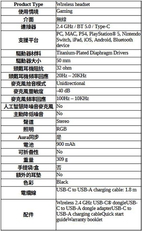 優異的電池續航力與快速充電支援:在 2.4 GHz 模式下可維持長達 70 小時*電池續航力,快速充電僅需 15 分鐘即可提供最長 3 小時的使用時間
