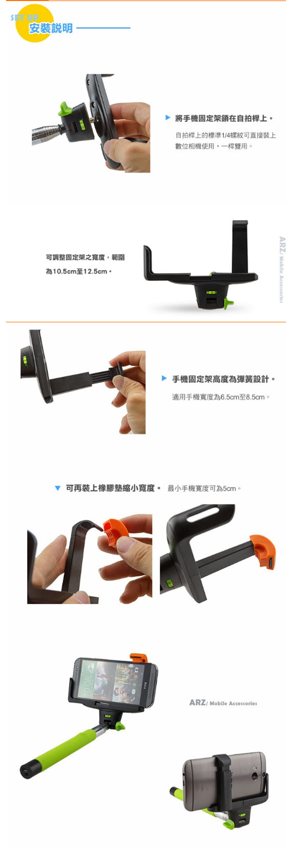 - 大號可夾手機寬度為:65-85mm之內