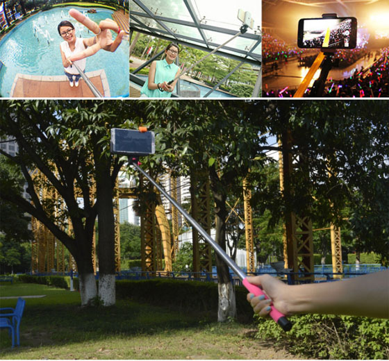 - 此款無線自拍杆也可以直接當作藍牙自拍遙控器使用,即使手機不放在自拍杆上,放在其他地方(十米之內)配對成功後也可以實現自拍,非常的好用。