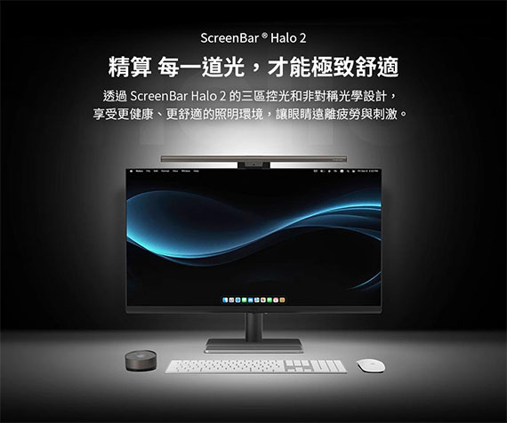 【上一個】【下一個】 | BenQ明基電通 ScreenBar Halo2 深灰 螢幕智能掛燈 無線旋鈕版