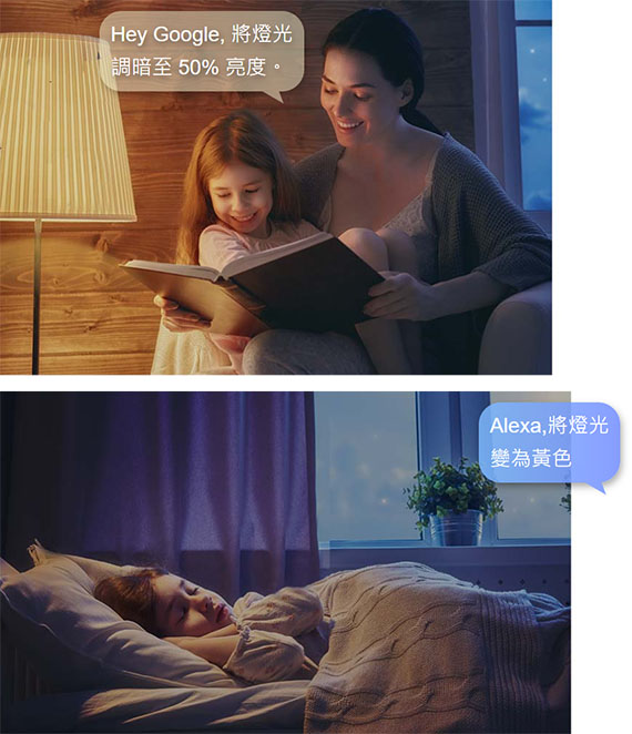 語音控制 - 搭配Alexa或Google助理使用語音指令來控制燈泡。