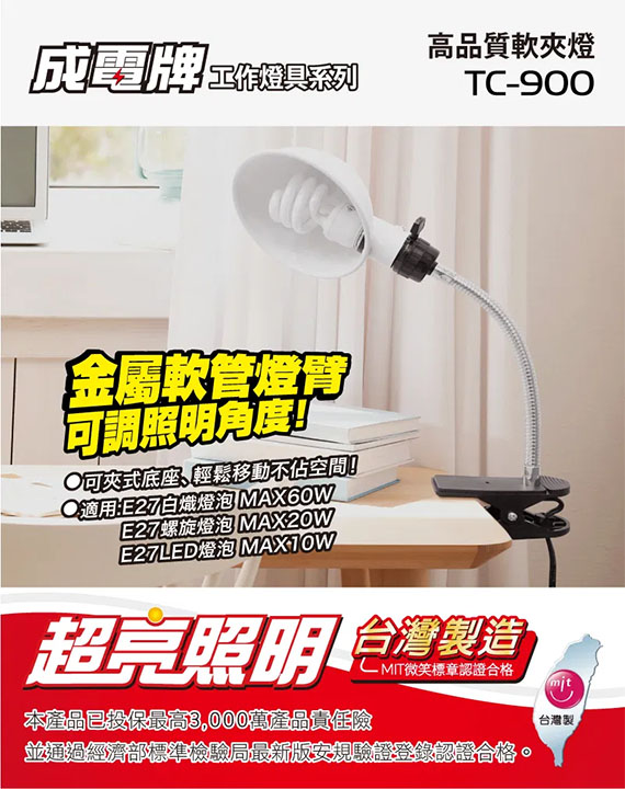 【上一個】【下一個】 | 成電牌 TC-900 高品質軟夾燈 (燈泡另購)