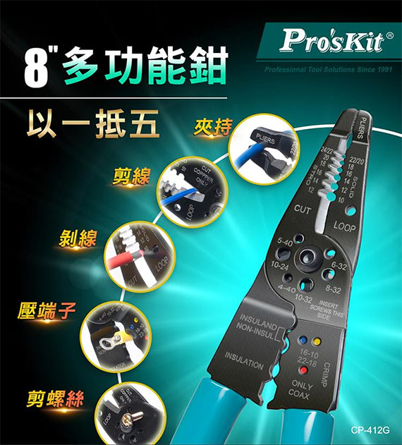 【上一個】【下一個】 | ProsKit寶工 CP-412G 8吋 多功能鉗