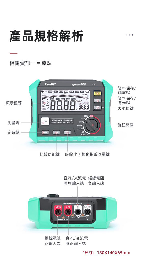 【上一個】【下一個】 | ProsKit寶工 MT-4103 絕緣電阻計