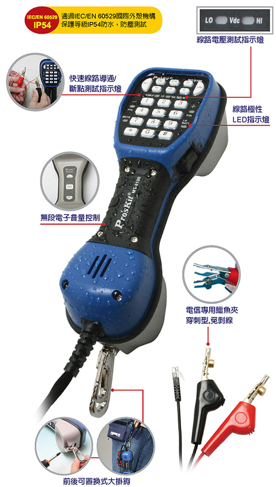 【上一個】【下一個】 | ProsKit寶工 MT-8100 防水型電話測試器 (客訂)
