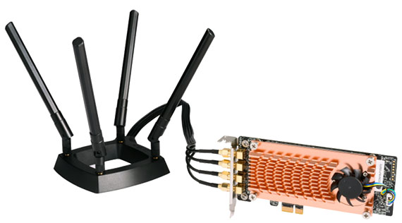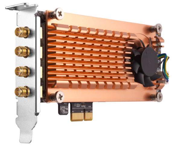 採用半高式 PCI Express (PCIe) 2.0 x1 介面,2.4 GHz/5 GHz 支援雙頻同步多工,支援 4 x 4 MU-MIMO 技術,搭載 2 組 Qualcomm QCA9984 網路介面控制器,具備IEEE 802.11n 及 IEEE 802.11ac 無線標準,提供最高達 2533 Mbps 的傳輸速率, 具備 4 支 5 dBi 可拆卸式全向性高增益天線,通用的 RP-SMA 天線接頭設計,提供80 公分長的高頻同軸纜線連接天線磁吸式延伸底座,靈活擺設 延伸收訊, 結合 Ubuntu/Linux PC 或 QNAP NAS 可作為存取點或基地台使用,二年保固