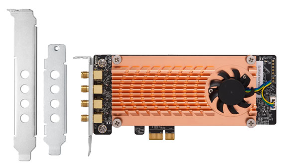 1 x QWA-AC2600 PCIe wireless adapter, 4 x detachable antennas + magnetic stand base, Full-height & specialized (for selected QNAP NAS) brackets and Quick Installation Guide