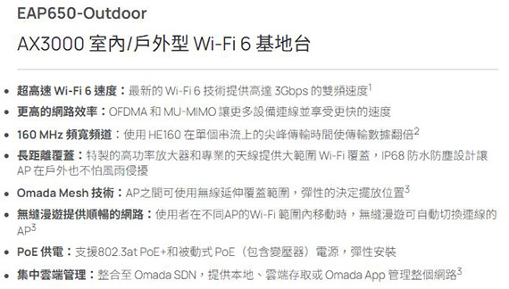 TP-Link EAP650-Outdoor AX3000 室內/戶外型 Wi-Fi6 無線基地台