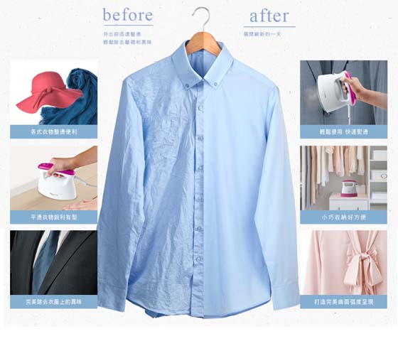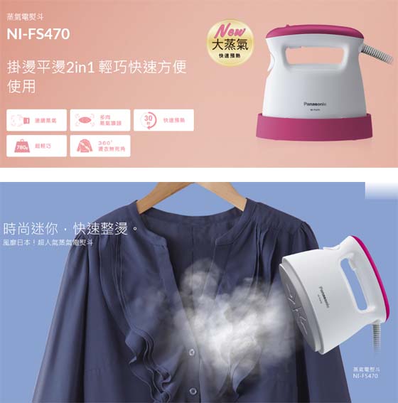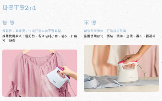 掛燙/平燙 2合1,360度全方位熨燙,不滴漏,除皺/除菌/除臭多用途,輕巧好收納,重量:780g,水箱50ml