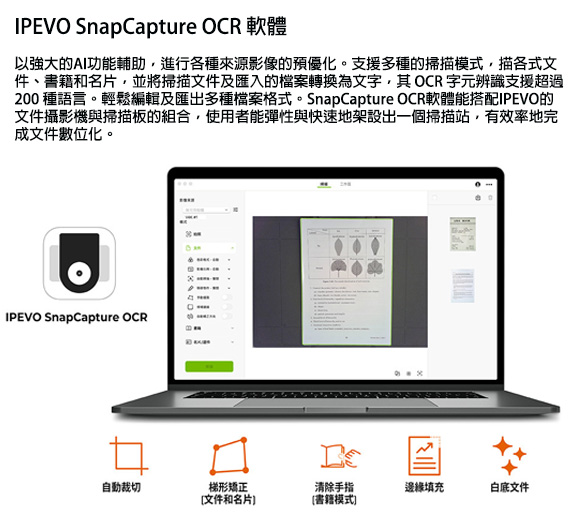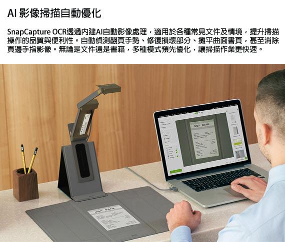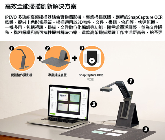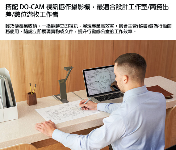 DO-CAM實物攝影機+專業掃描底版+SnapCapture OCR軟體授權包。輕巧便攜易收納、一指翻轉立即視訊。適合:設計工作室/商務出差/數位游牧工作者/展現專業與高效率的工作者