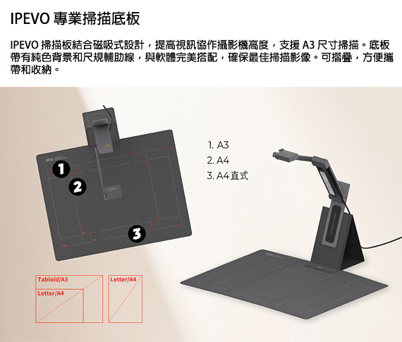 IPEVO DO-CAM-S 灰色 A3 多功能OCR高架掃描器 實物攝影機