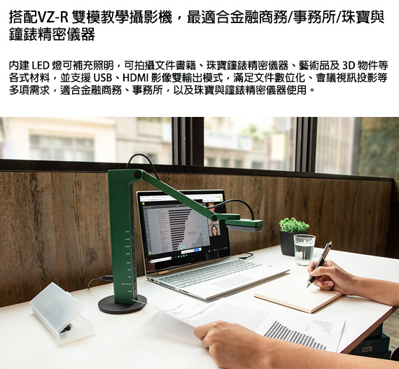 VZ-R 雙模式實物攝影機+專業掃描底版+SnapCapture OCR軟體授權包。內建LED燈可補充照明,支援USB.HDMI影像雙輸出模式。適合:金融服務/商務辦公/事務所等機關單位/珠寶與鐘錶精密儀器