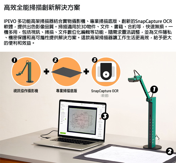 IPEVO VZ-R-S A3 多功能OCR高架掃描器 雙模式實物攝影機
